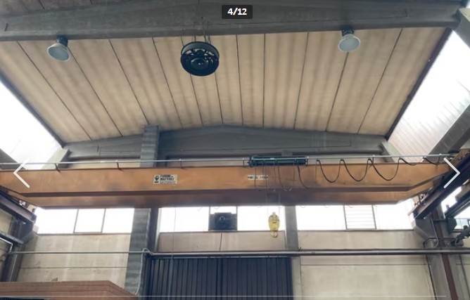 • Capannone di mq 1.135,50, altezza 10 m, dotato di 4 portoni (H 5,00 m), 2 carroponti bitrave Furoni & Mattioli (portata 5.000 kg e 10.000 kg a 7 m di altezza), centrale compressori con impianto aria distribuito, 1 bagno (mq 19,50), riscaldamento autonomo nuovo con caldaia Lamborghini, impianti a norma.